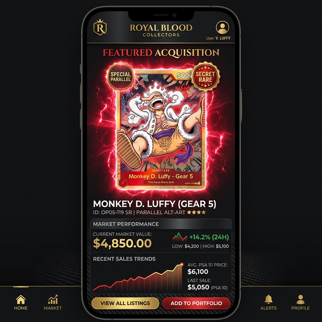 OP10 Royal Blood is headlined by the Trafalgar Law Manga Rare (OP10-119), widely considered the premier chase card of the set. Beyond that, collectors are looking for the Trafalgar Law "Pirate Flag" Secret Rare, the Monkey D. Luffy Alternate Art Secret Rare, and alternate art Super Rares like Edward Newgate, Kuzan, and Sanji.
