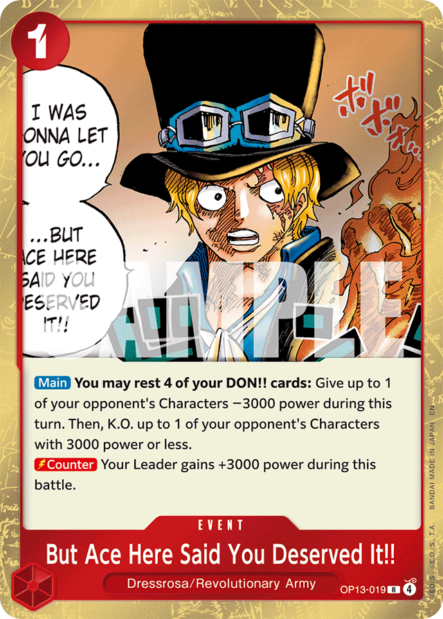 But Ace Here Said You Deserved It!! in OP13 with live One Piece TCG price data, OPTCG value tracking, and card metadata for collectors.